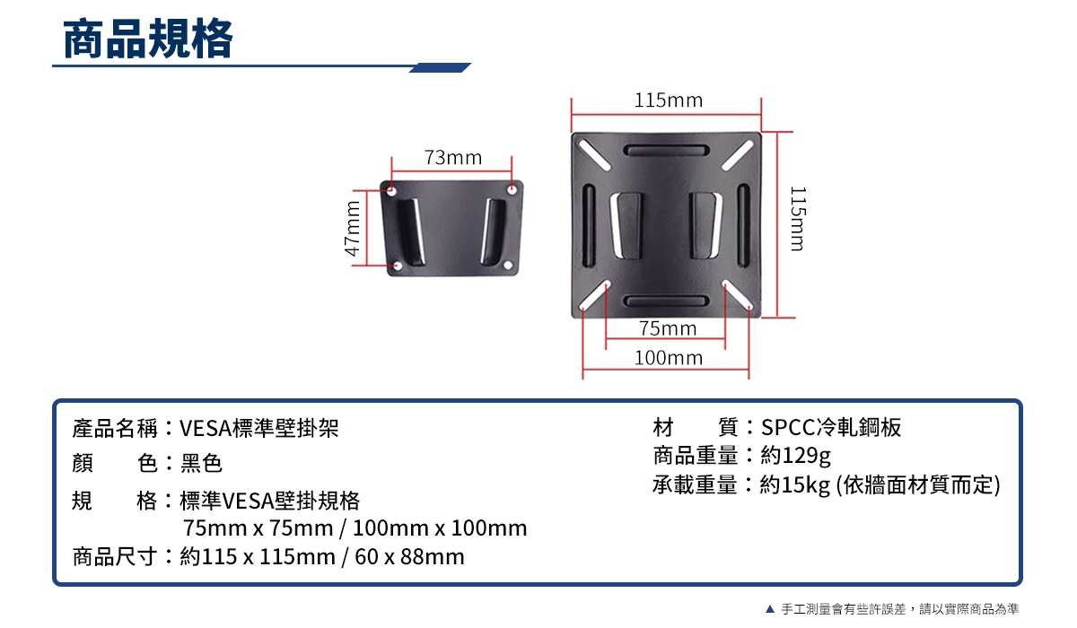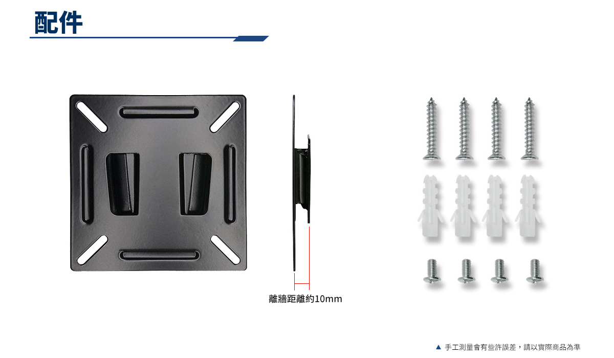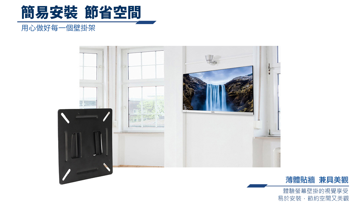 - 符合VESA標準壁掛規格75mm及100mm的孔距
