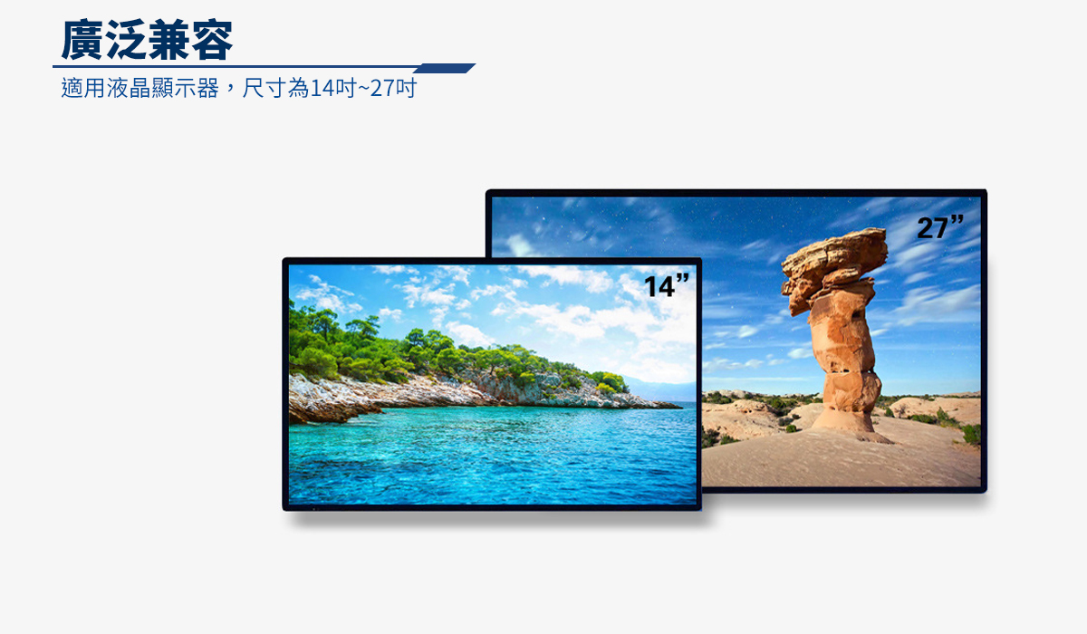 - 適用14吋~27吋液晶螢幕顯示器及數位相框