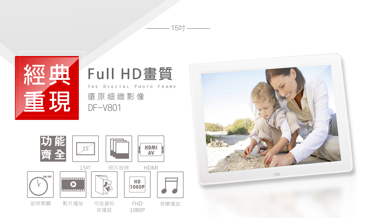 - 15吋數位相框,畫質細膩,色彩鮮豔