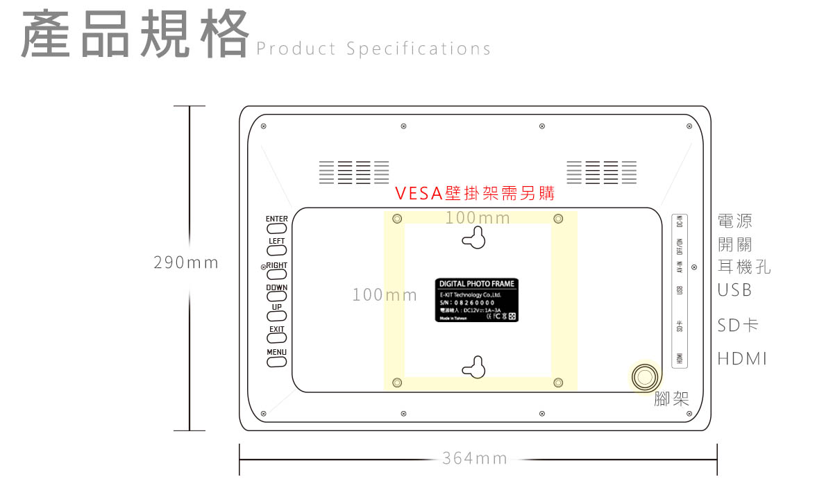 - 支援SD卡∕USB讀取,數位相框可壁掛