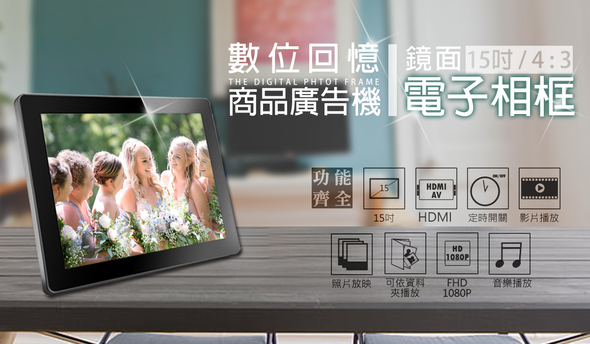 - 15吋數位相框,畫質細膩,色彩鮮豔