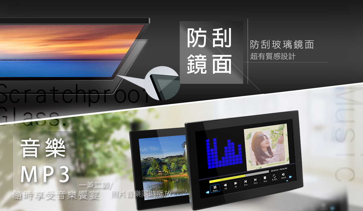 - 圖片+音樂同步播放,MP4影片,可當商品廣告機