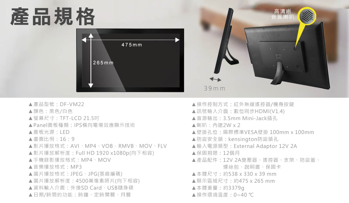 Home / 電子數位相框 / 19-22吋數位相框 / DF-VM22