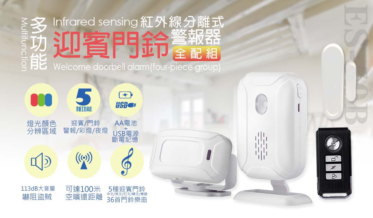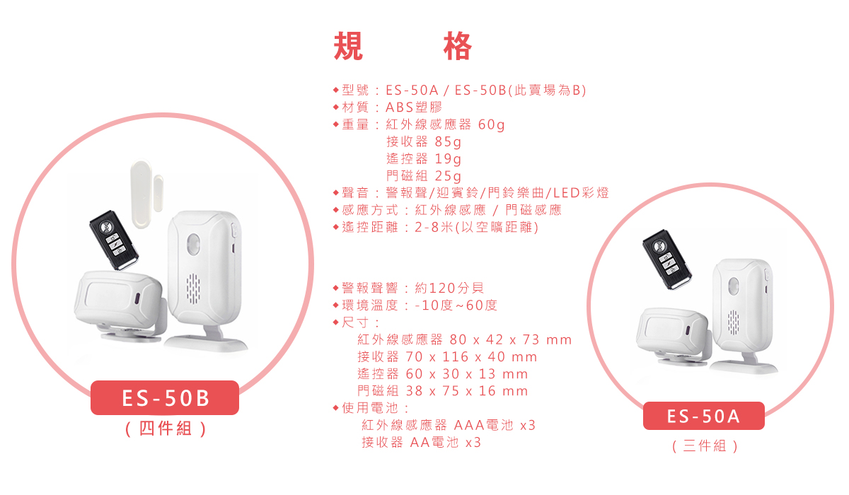 逸奇50B多功能紅外線分離式警報器(全配四件組)