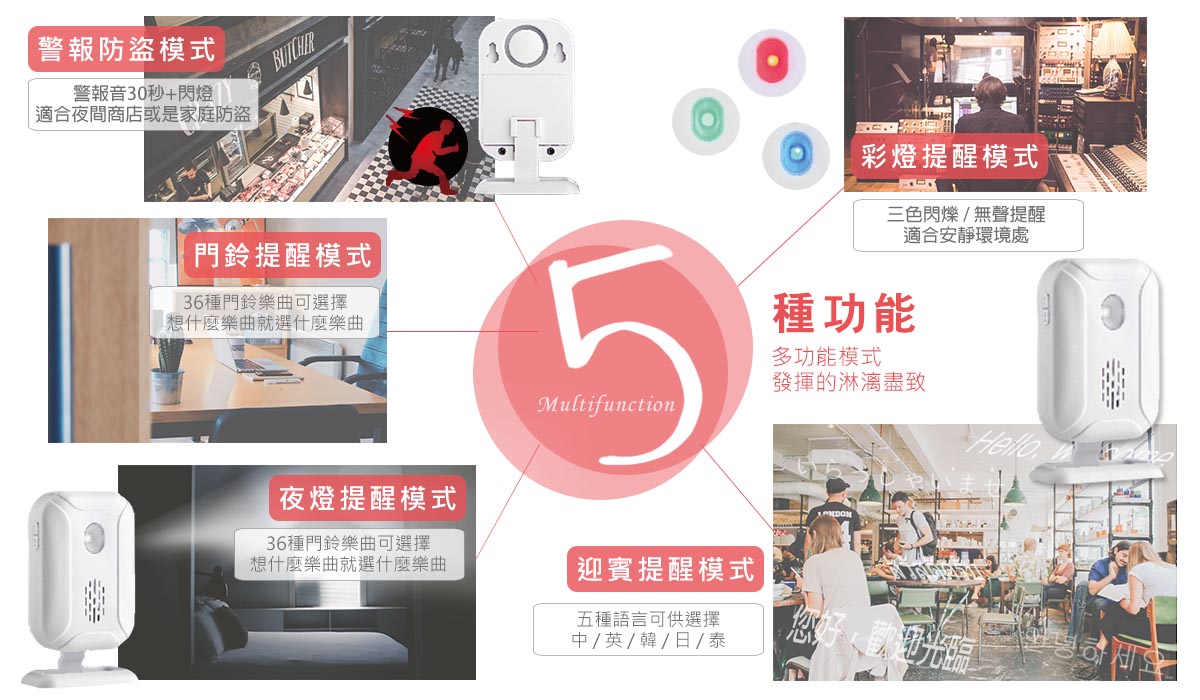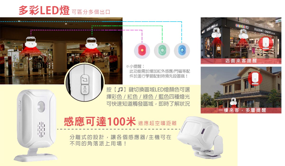 警報聲/迎賓鈴/門鈴樂曲/LED彩燈