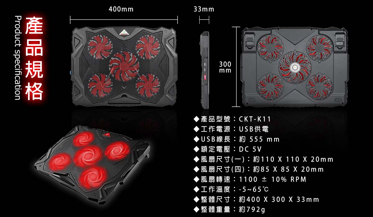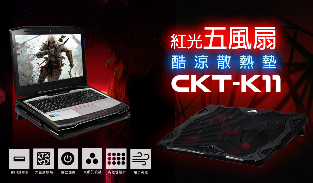 逸奇K11 紅光五風扇酷涼筆電散熱墊
