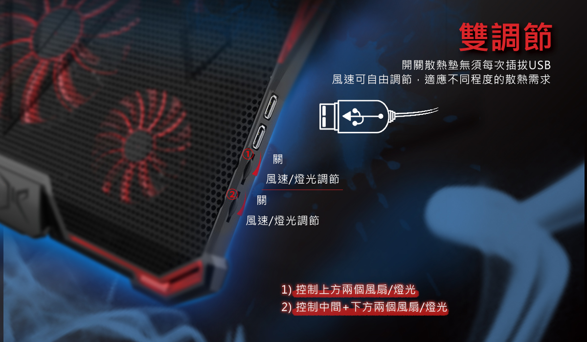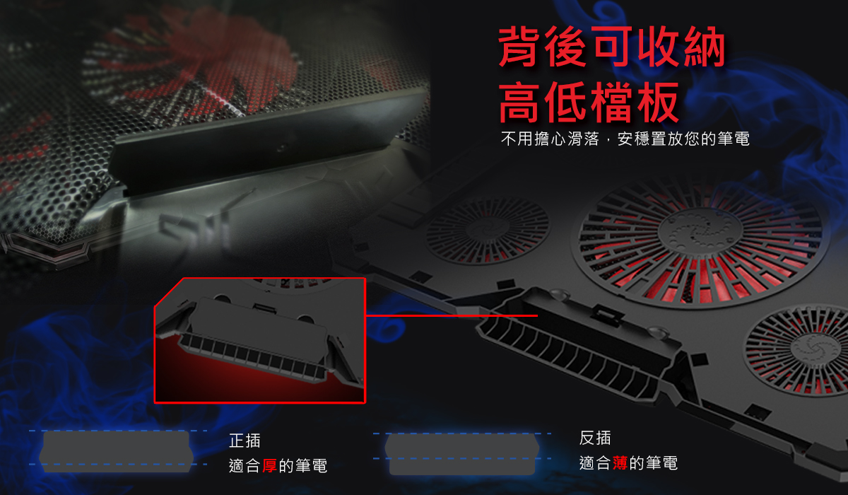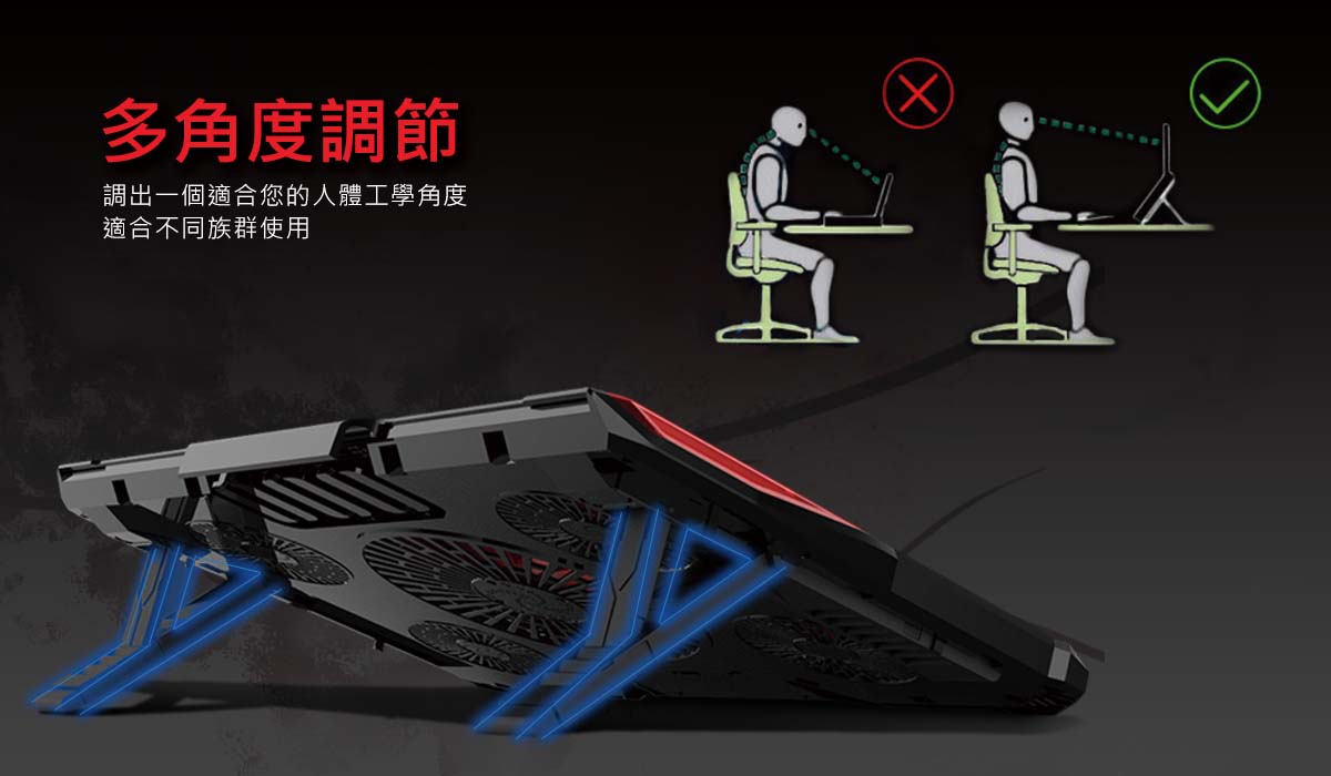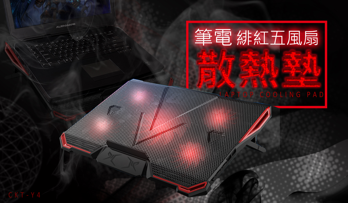 逸奇Y4 緋紅五風扇筆電散熱墊