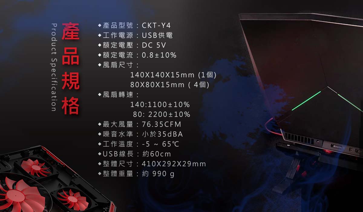 - 五風扇散熱,靜音型風扇