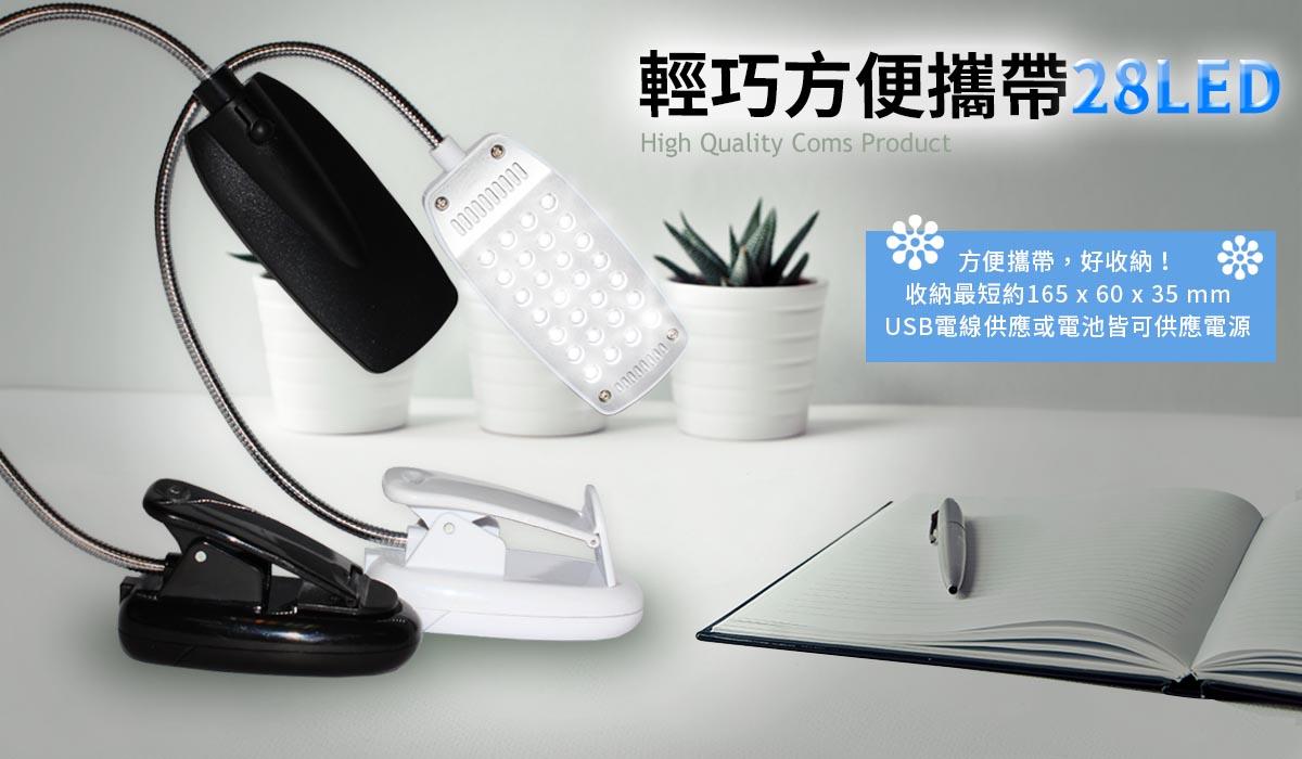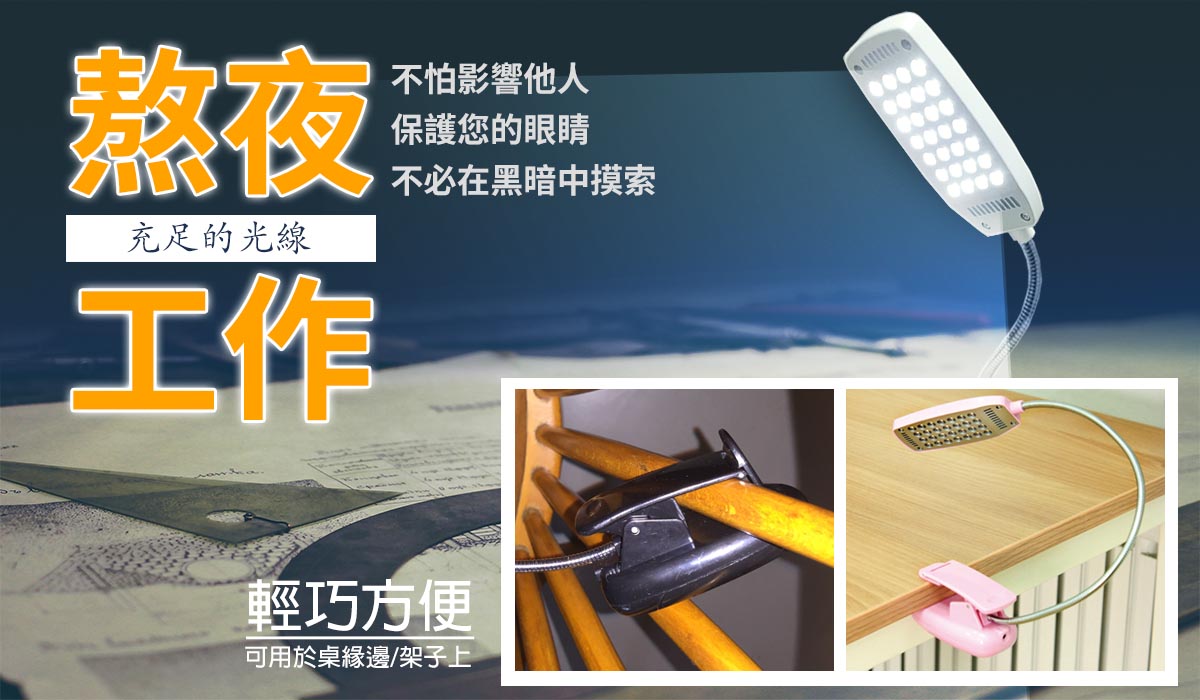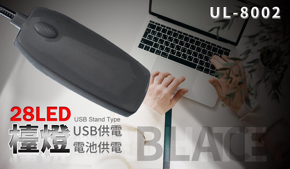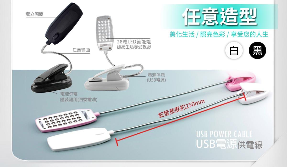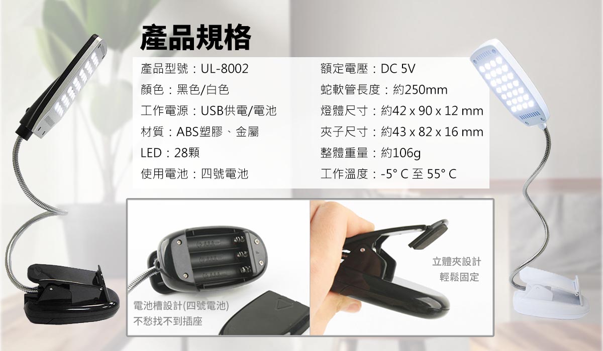 逸奇8002 電池/USB二合一黑色蛇管檯燈夾