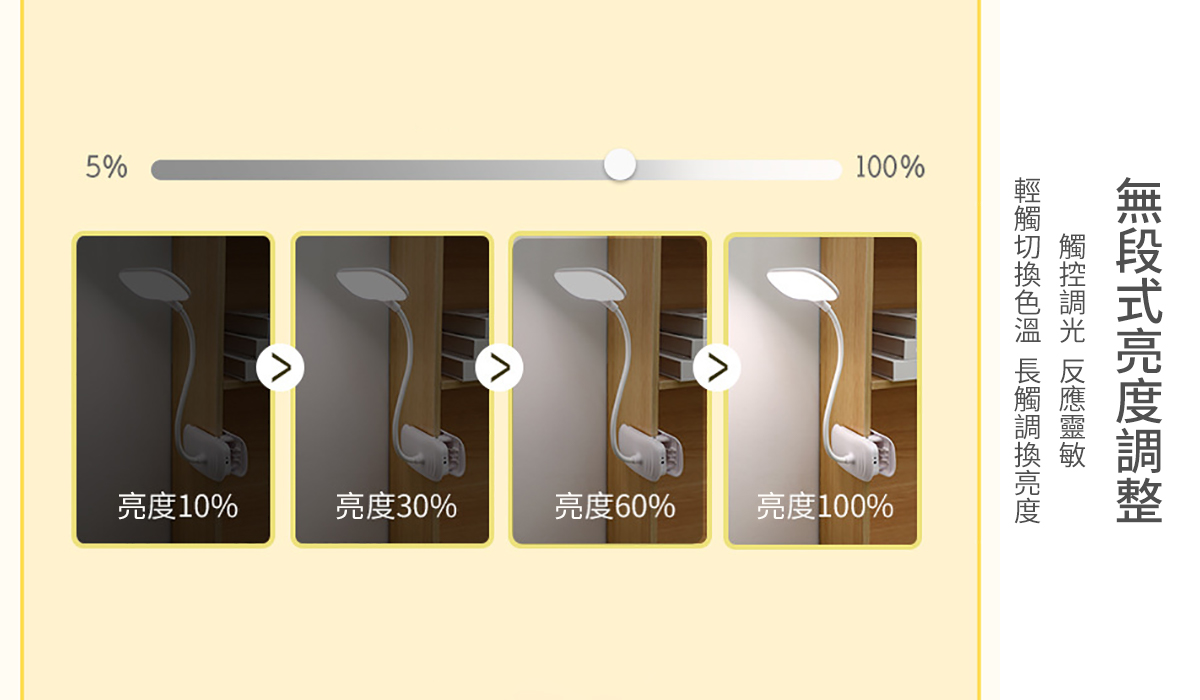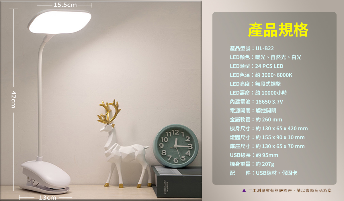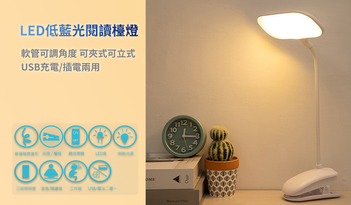 - 柔韌軟管夾立式設計,適應多種環境使用