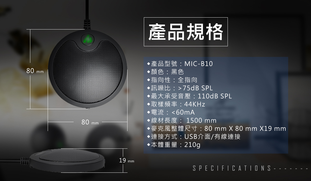 - 會議型專用麥克風,高感度收音