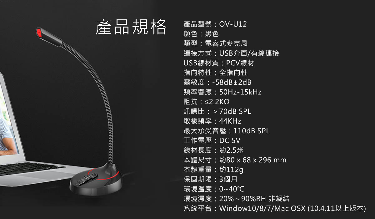 - USB介面,高感度全指向性麥克風