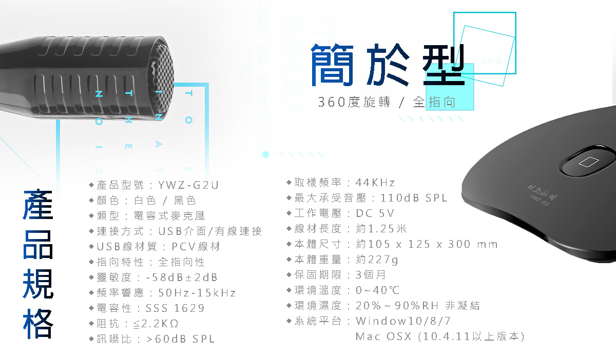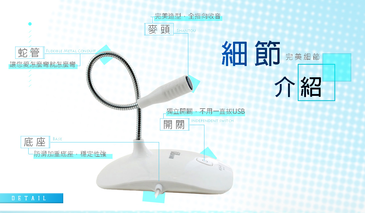 逸奇G2U高感度金屬軟管全指向電腦麥克風